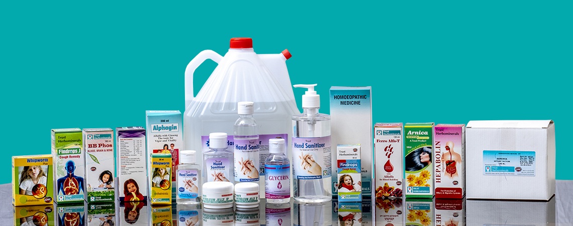 TRUST Herbominerals started on 26th January 2006 is our Homeopathic Manufacturing unit located in Manjummel, Ernakulam district. With 14 years of experience and over 100 employees currently we have operations all over Kerala with representatives covering every district. Few of our main products include tinctures, mother tinctures, dilutions, ointments, oils, sugar globules, blank tablets, milk of sugar and few of our very own patented products. Due to the Covid pandemic emergency we started our own homeopathic sanitizer under the brand name Trust Herbominerals.